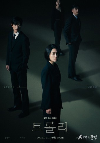전 단락에서 트롤리 딜레마에 대해서 알아보았다. 그럼 이 어려운 문제를 조금 다르게 생각해 볼 수 있다. 전차가 그대로 직진해서 앞으로 향한다면 당신이 꿈꿔왔던 세상이 파괴된다. 옆 선로에는 당신의 사랑하는 사람 혹은 당신이 그 무엇과도 바꿀 수 없다고 생각했던 당신의 신념, 믿음이다. 당신은 어떤 선택을 할 수 있을까 생각해 보면 어려운 문제다. 오랫동안 꿈꿔오고 갈망했던 세상을 쟁취하기 위해서 전차의 선로를 바꿀 것인지 고민이 된다. 물론 바꾼다면 당신의 사랑하는 사람, 혹은 신념이 산산조각 나고 만다. 선로 변환기 앞에서 당신은 아마 대신 누군가가 그 결정을 내려주길 바라며 뒤로 돌아 도망가고 싶을지도 모르겠다. 이 드라마에서는 정답을 결정할 수 없는, 정답이 없는 선택의 순간에 마주한 어둠 속에서 끝내는 도망가지 않고 최선을 다해 어떤 선택을 하는 것에 대한 이야기를 다루고 있다. 본 드라마의 포스터의 부제를 보면 그 고민에 대한 제작진의 의도를 엿볼 수 있다. 잠시 살펴본다. "그 누구도 일어날 것이라 상상조차 하지 않는 일이 있다.", "당신만 눈 감으면 아무도 모를 비밀이야.", "영원히 감출 수 있을 거라 생각하지 않았습니다.", "후회 안 할 자신 있으세요?" 등의 문구에 대해 깊게 생각해 보는 것도 재미있을 것 같다. 16부작으로 SBS에서 2022년 12월 19일부터 2023년 2월 14일까지 방송 예정이다. 월요일, 화요일 오후 10시에 만나 볼 수 있다. 전작 '치얼업'의 후속작이다.